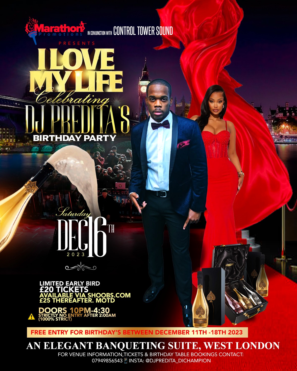 Marathon Promotion in conjunction with Control Tower Sound (CTS)🏆 Presents I LOVE MY LIFE ❤️🥳💯 Celebrating Dj Predita’s Birthday Party 🥳🕺🏾 Saturday December 16th 2023📅 @ an Elegant Banqueti...